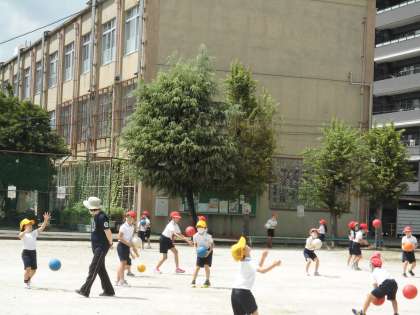 夏休みが明けてから久しぶりの体育でした。感染防止に気を付けながらボールを使った学習をしました。ボールをついたりボールを上に投げて受けたりして楽しみました。