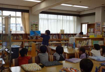 図書室では,いつも司書の先生が本の読み聞かせをしてくださいます。
