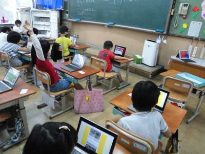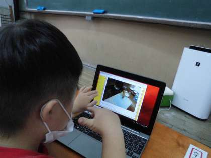タッチパッドでのクリックの仕方を習ってから,ロイロノートを開きました。ロイロノートのメモとして先生から本校のホームページのアドレスを送ってもらい,🔍(Web)マークからホームページを開きました。