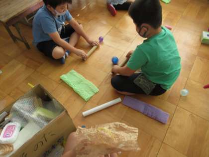 今回,2組では「回す」「ころがす」にしぼって遊びを考えてみました。