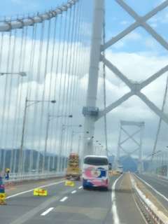 淡路島から「あすたむらんど徳島」に向かっています。海を見て「大海原やん」と喜ぶ6年生。直後に鳴門大橋を通り、鳴門の渦潮を見ることができました。青空も見えています。
