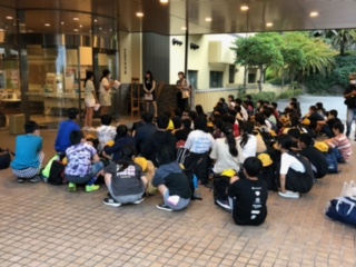 ほぼ時間通りにに宿舎に到着しました。入館式では宿舎の方にしっかりと挨拶をした後、宿舎の方の説明をよく聞いていました。グッドマナーで、みんな元気です。