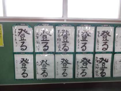漢字と平がなの大きさに気を付けて 「登る」という字を書きました。