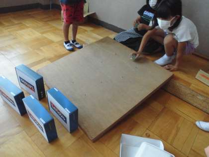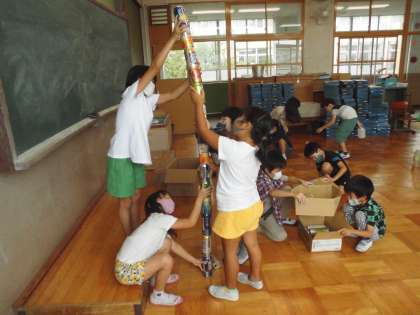 いろんな素材を使って,様々な遊びを試してきた2年生の子どもたち。