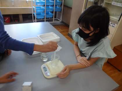 電子天秤の使い方を確認して、興味をもって取り組みました。