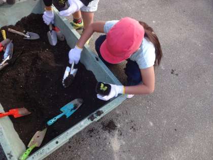 花の苗をみんなで植えました。
