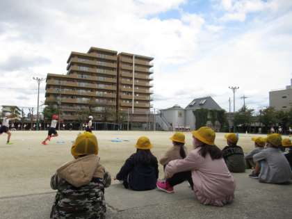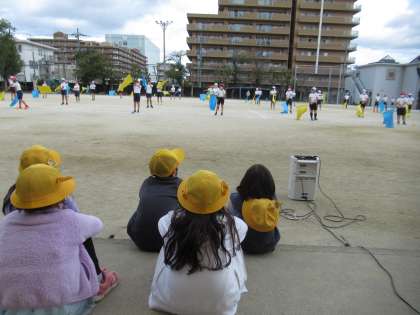 体育発表会当日は,交代制のため見られない6年生の演技を「よかったら,どうぞ」と招待してもらい,事前に見せてもらいに行きました!