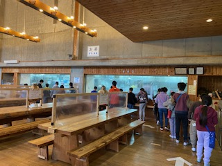 手を洗い、消毒をして、食堂に入ります。