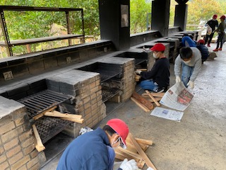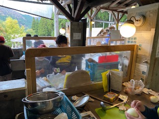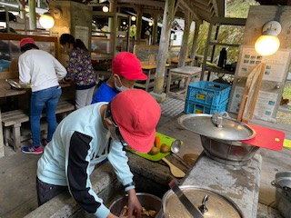 野外炊事,頑張っています。