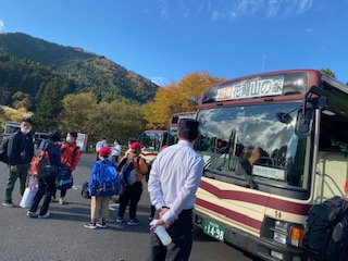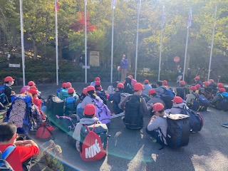 最後に山の家の先生からお話を聞き.学年旗を下ろしました。