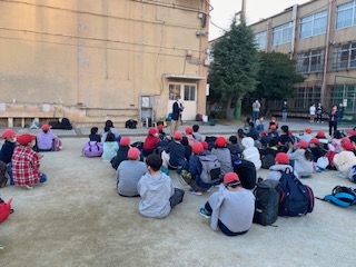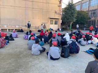 学校に到着して、解散式を行いました。