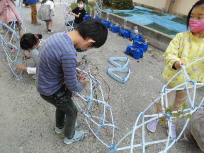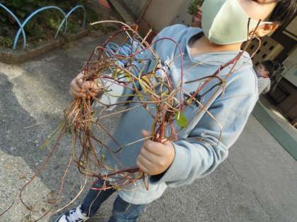 1年生 アサガオの蔓を使ってリース作り。
