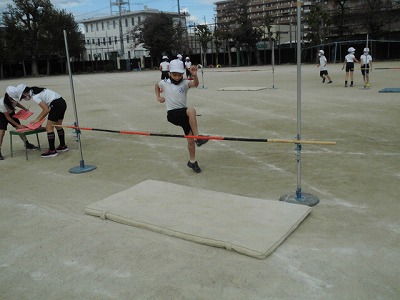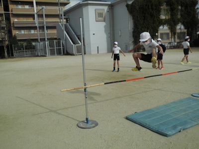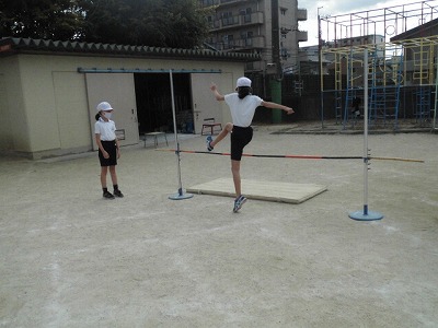 はさみ跳びのコツを覚えてきた子どもたち,3歩から5歩の助走でそれぞれの高さに挑戦しました。