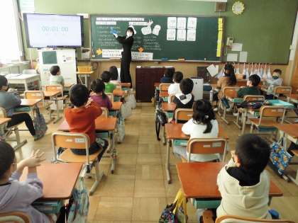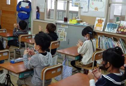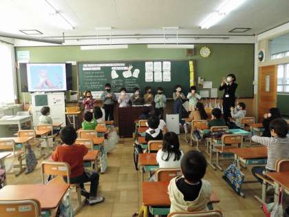 最後には,曲に合わせて楽しく手洗いの仕方を確認しました。