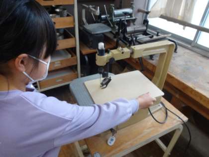 初めて電動糸のこぎりを使うので,使い方を確認して集中して取り組みました。