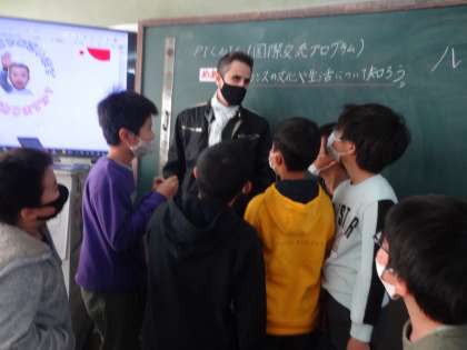 フランスの方とアルゼンチンの方のお話を聞き,子どもたちは日本の文化や生活と比べて似ている所や違いを知ることができました。外国語の学習でも,自分が調べたい国の主な名所やスポーツ,食べ物などを調べて英語で紹介する学習をしています。