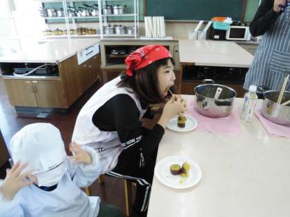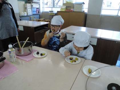いもが柔らかくなった段階で,美味しそうな香りがしてきました。大学いものたれで絡めてとてもおいしくできました。