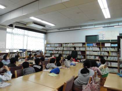 図書室では,学校司書の橋本先生から「だんまりくらべ」というお話を聞きました。