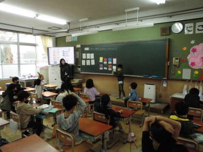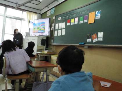 1年生も,英語に慣れ親しむ学習を進めています。今日はいろいろな色を英語で表現することを学習しました。学習の最後に振り返りカードを書きました。
