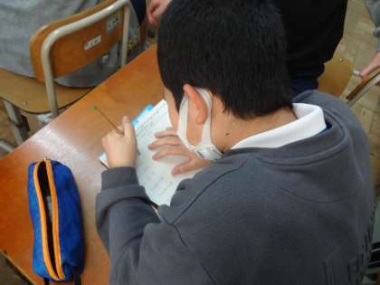 小数の足し算・引き算・かけ算・わり算や分数の通分・約分など,これまで学習した内容に取り組みました。ジョイントプログラムでも,計算問題はたくさん出るので,苦手な所は冬休みにくり返し計算ドリルなどを活用して練習するように伝えました。
