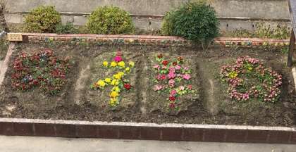 *2枚目の花壇の写真の中央は花で祥豊小の「祥」の漢字を書いています。「祥」には“めでたいこと。喜ばしいこと。”という意味があります。