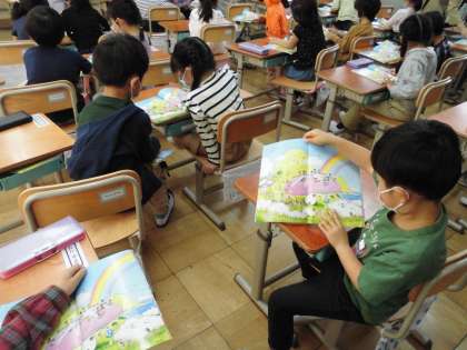 教科書の挿絵を見て,見つけたことを友だちに伝えました。