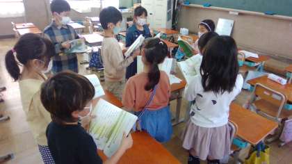 ふきのとうの学習も大詰めです。最後はグループに分かれての音読劇。それぞれの役になりきって音読の工夫を考え,一生懸命練習していました。