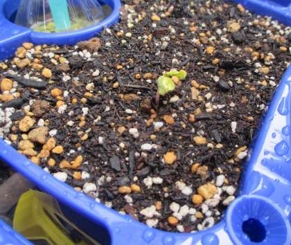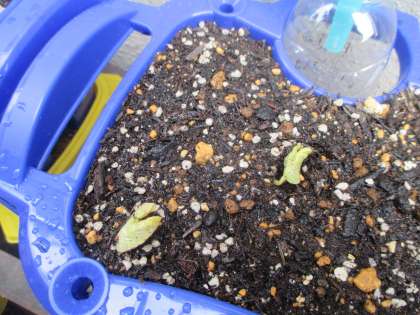 先週の金曜日に種を蒔いたあさがおが,芽を出しはじめました。小さくても力強く出てきた芽を見て,子どもたちは大喜びでした。まだ芽が出ていない子は,「早く出てきてね!」と声をかけていました。