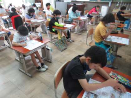 町たんけんで学んだことや,教科書・地図帳を使って学んだことを思い出しながら,一生懸命取り組んでいました。
