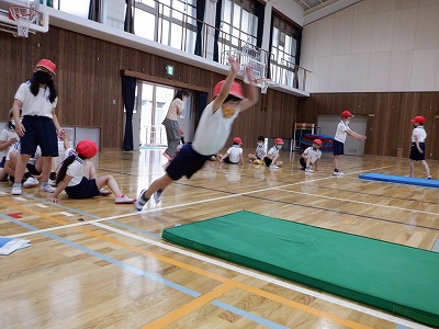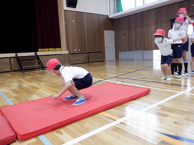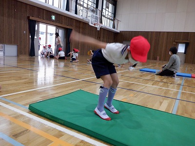 体力テストの立ち幅跳びに挑戦しました。
