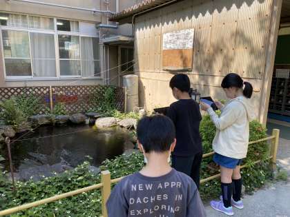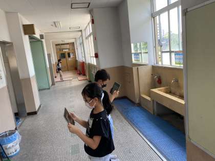 みつけた場所をタブレットで写真をとり,友だちと伝え合いをしました。