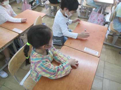学習のまとめとして,さいころを振って,目の数で7をつくるゲームをしました。「最初は1やったから…次は,6が出たらいい!」と,しっかりと考えながらゲームに臨んでいました。