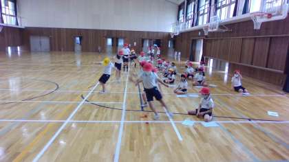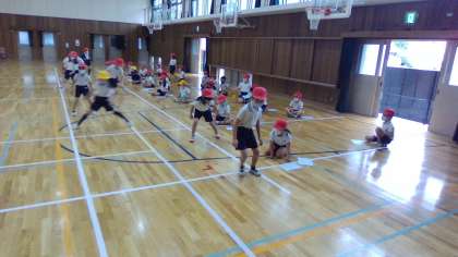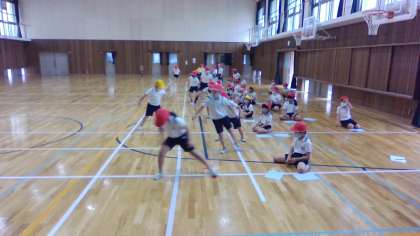 体育で,新体力テスト「反復横跳び」の記録をとりました。初めての横跳びの動きに苦労する様子も見られましたが,一緒に少し練習するだけですぐにできるようになりました。柔軟に対応していく様子に子どもたちの吸収力の高さを感じさせられました。また,友達の記録を間違えないように頑張って数えている様子も見られ,思いやりや,責任感にもつながっていけばと思いました。