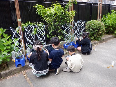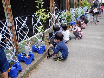 「はっぱはギザギザでけしごむぐらいの大きさです。」「トマトのみは,真ん中がすこし赤くて,まわりはみどりいろをしていました。」1回目からとても詳しく観察することができました。どんどん観察名人になっていきましょう!