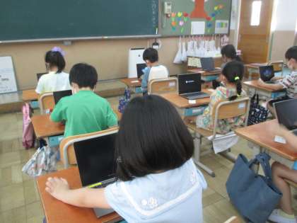 今日は,ログインとシャットダウンの練習をしました。初めてキーボードを打つ子もいたようで,苦戦していました。しかし,何度も練習をするうちに,「できるようになったよ!」と自信が出てきた子もいたようです。