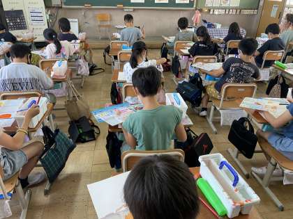 しゅ色だけでも,水の量を調節するだけで様々な色になることを学習しました。