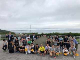 淡路SAで、明石海峡大橋をバックに写真を撮りました。