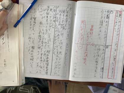 「初め」「中」「終わり」の組み立てに気を付けて文章を書くことができました。