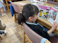 音楽科では,「ミッキーマウスマーチ」と「メヌエット」をきいてグループで手遊びを考えました。手をたたいたり,膝を打ったり,頭をぽんっとしてみたり。自由な発想で4人で手遊びができました。これまでの授業では恥ずかしがっていた子も,友達と一緒となるとがぜん乗り気で,もっとやりたいという声も聞こえてきました。次回でこの単元は最後ですが,グループごとに発表をして,振返りをしようと思います。とても楽しみです。