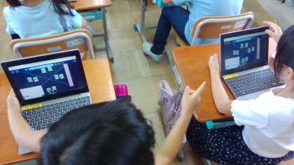 国語科では,タブレットを利用して同じ部分を持つ漢字をなかま分けしました。タブレットで操作できることもあり,全児童がしっかりと取り組むことができました。そのあと,1年生で習った漢字をプリントになかま分けしました。はじめのタブレット利用でかなり前向きな姿勢になっていたので,プリントへもしっかりとまとめることができました。