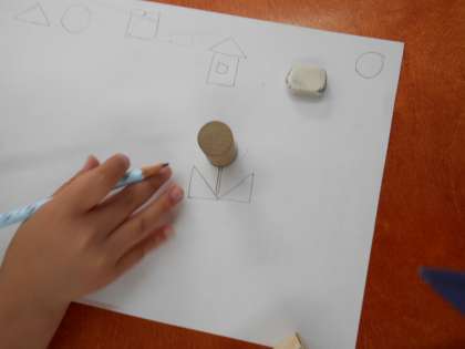 算数の学習で積み木を使って,いろいろな形をうつしました。