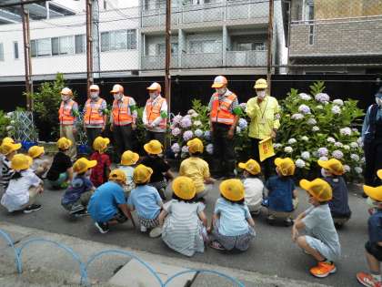 祥豊地域の交通対策協議会や見守り隊の皆様に,交差点に立って見守っていただき,子どもたちは,交通ルールを守って安全に歩くことができました。