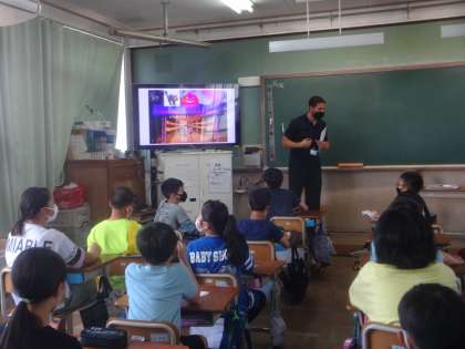 出身のTexasのことやハロウィーンなどの行事についてお話していただきました。子どもたちは,とても関心を持って話を聞いていました。