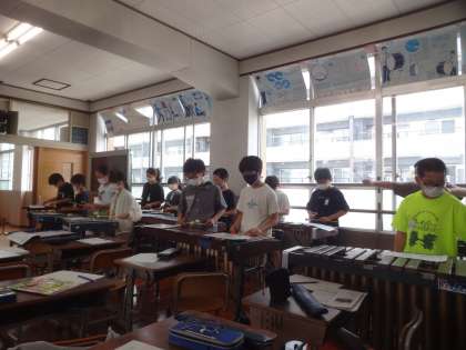 みんなで合奏しています(6年 音楽)