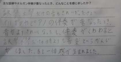 音楽の学習では, 鉄琴や木琴を使い「星空はいつも」という曲の合奏をしています。子どもたちは,オルガンやピアノに合わせて鉄琴・木琴を上手に演奏しています。