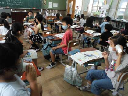 理科の「音のふしぎ」の学習では,糸電話を作って,気が付いたことを話し合いました。「糸が震えてる!」と,音が出るひみつに気付いてうれしそうでした。