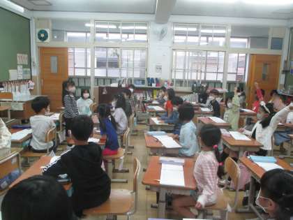 小学校に入学して、半年が過ぎました。体育発表会も終わり、学習に集中する日が続いています。1年生では、「友だちの話を聞く姿勢」に気をつけています。友だちのほうに体を向け、心で話を聞いています。