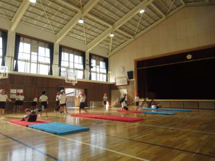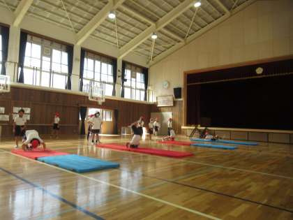 体育で「マット運動」に取り組んでいます。