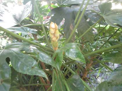 発見は、まだありました。「先生、ここにでっかい葉っぱがあります!」と、大きな葉を見つけた子もいました。その葉の奥には、花のようなものもあり、「なんやろう?!」と、びっくりしていました。