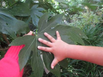 「この葉っぱ、僕たちの手よりも大きい!」といろいろなものと大きさを比べる子もいました。